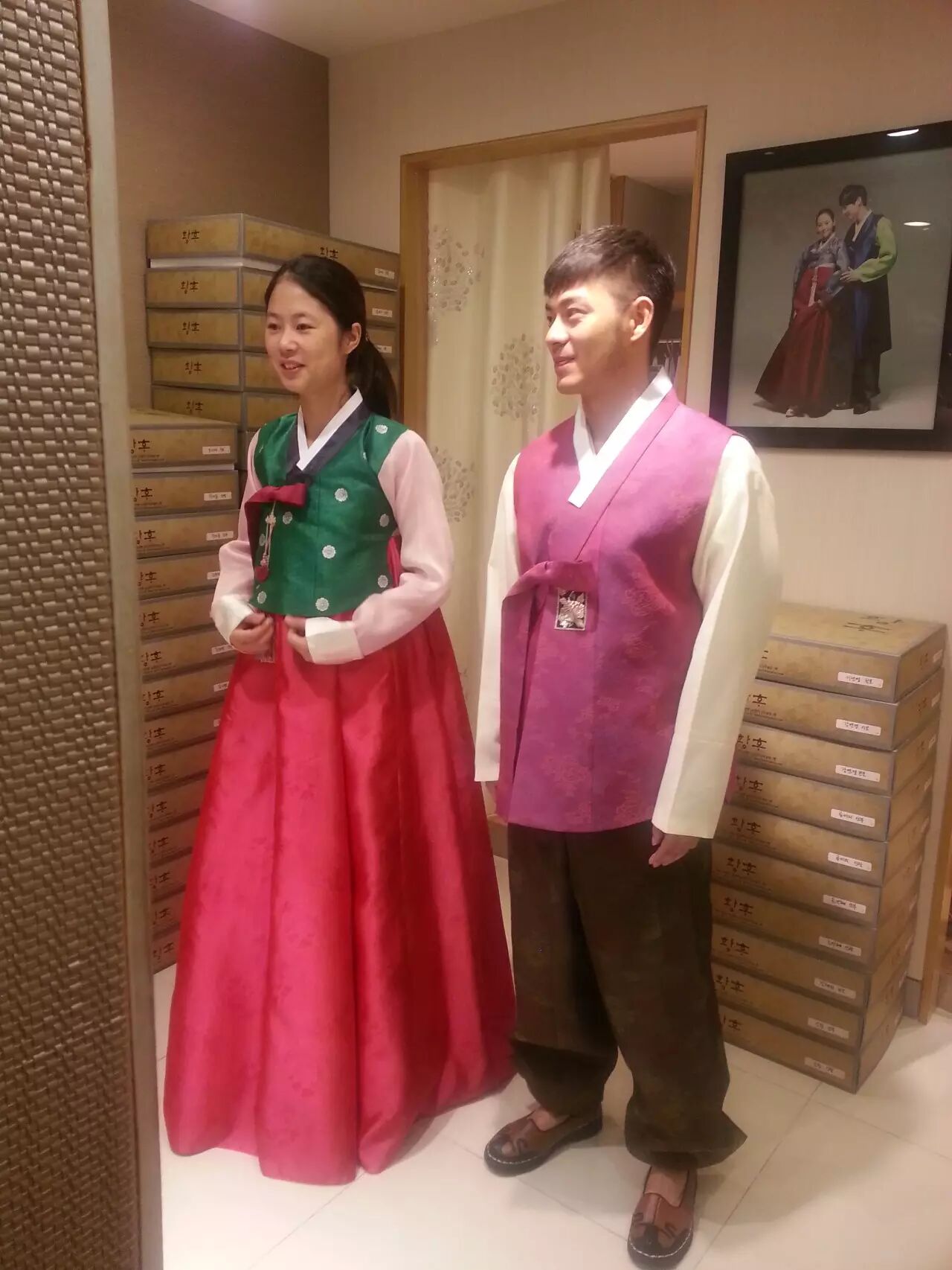 我们的韩服是明天拍婚纱照的时候用的,